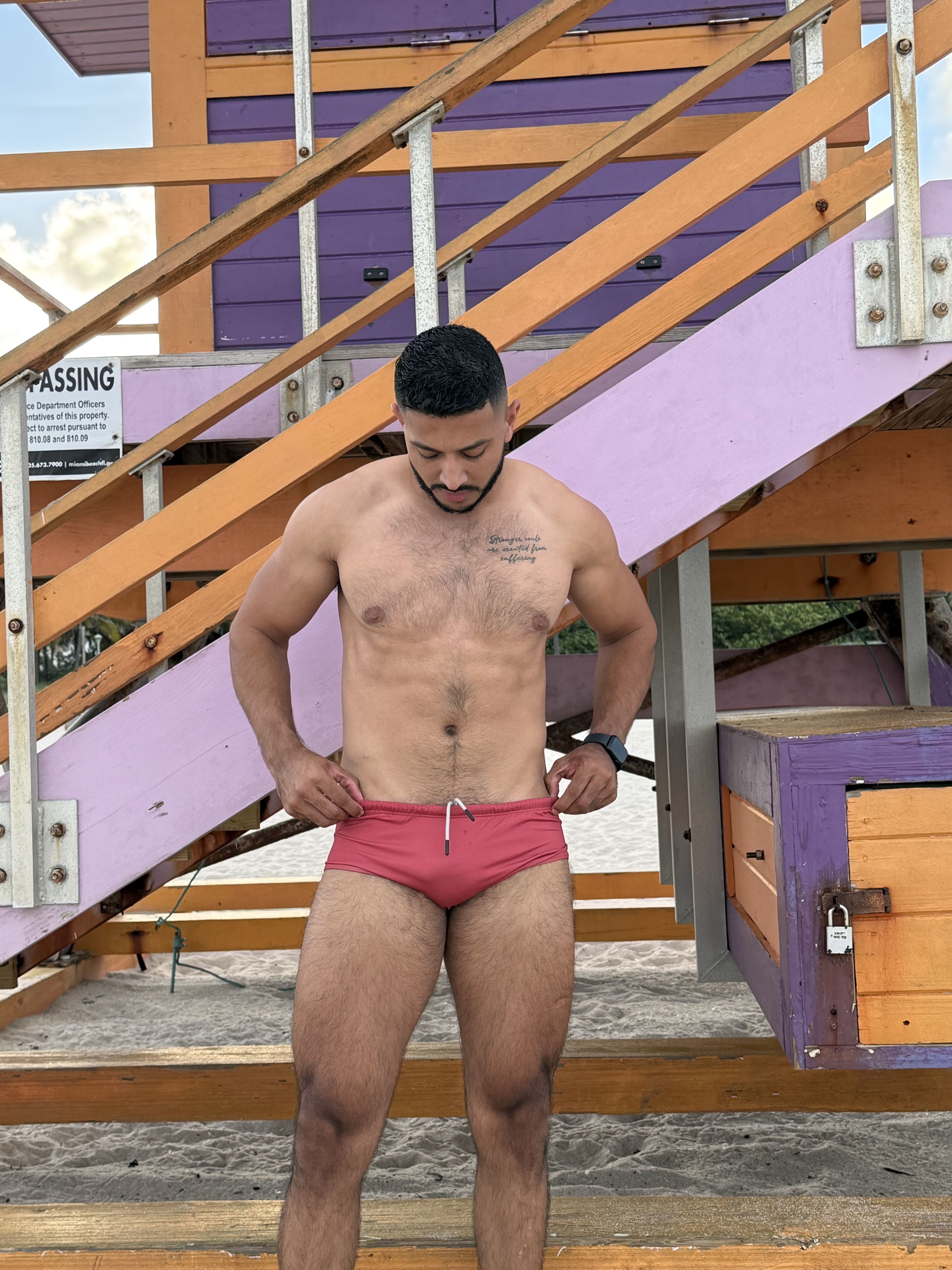 Imposing and sophisticated, the Crimson Tide Zunga combines an elegant deep red tone with functional details that elevate your style at the beach or pool. This minimalist design is perfect for those looking to project confidence and masculinity with a high-quality garment.